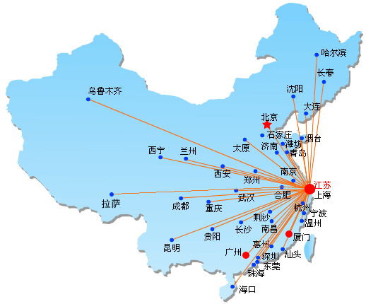江蘇?。禾K州、無錫、常熟、張家港、昆山、常州、江陰、南京、揚(yáng)州、鎮(zhèn)江、南通、泰州、江都、徐州、吳江、溧陽